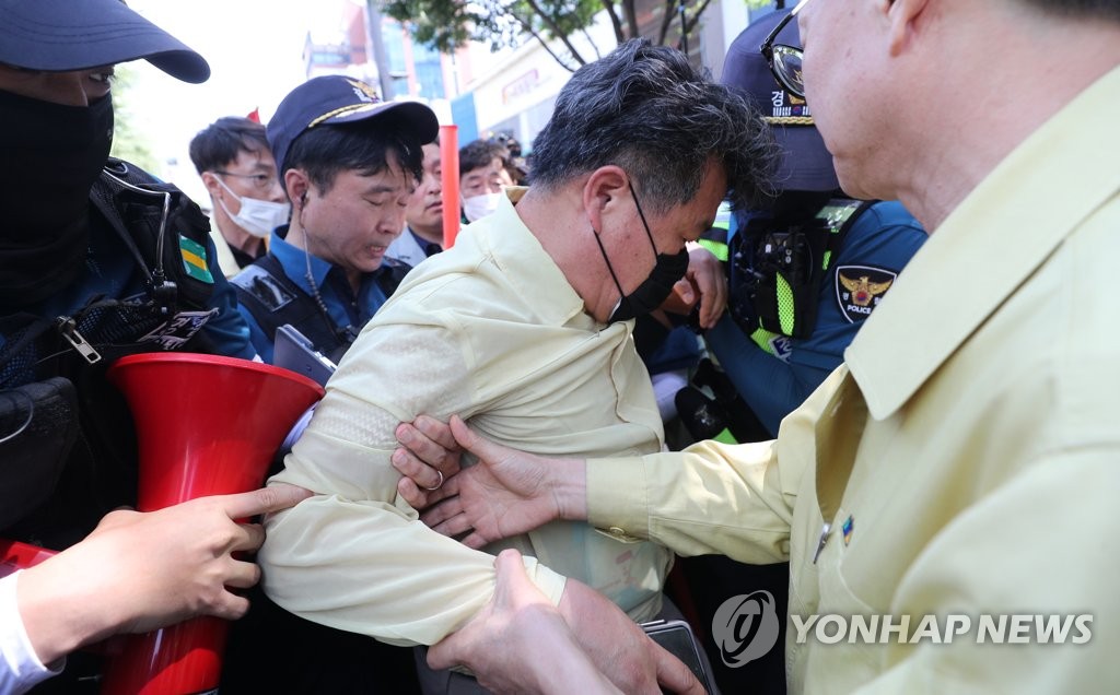 경찰은 공무원들에게 "적법한 집회"라며 "안전사고를 예방해야 한다"고 설명하며 무대 설치 차량의 진입을 위한 길을 터줬다.