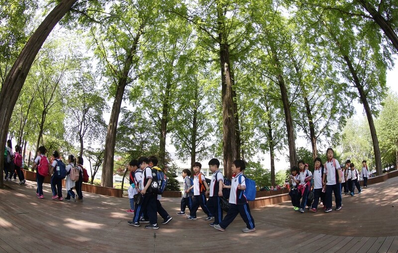 | ▲ 춘천에서 봄 소풍 나온 초등학생들이 신록이 우거진 나무를 따라 걷고 있다. 2016년 [연합뉴스 자료사진] |