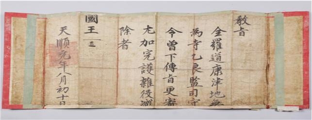 조선 세조가 내린 '사찰 잡역 면제' 명령서, 국가 보물 된다