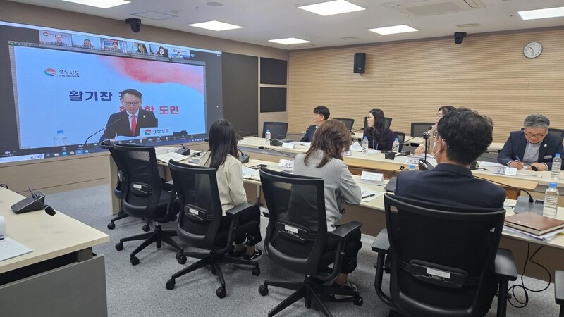 (창원=연합뉴스) 이정훈 기자 = 경남도는 14일 도청 영상회의실에서 김명주 경제부지사 주재로 해외사무소 영상회의를 개최했다.