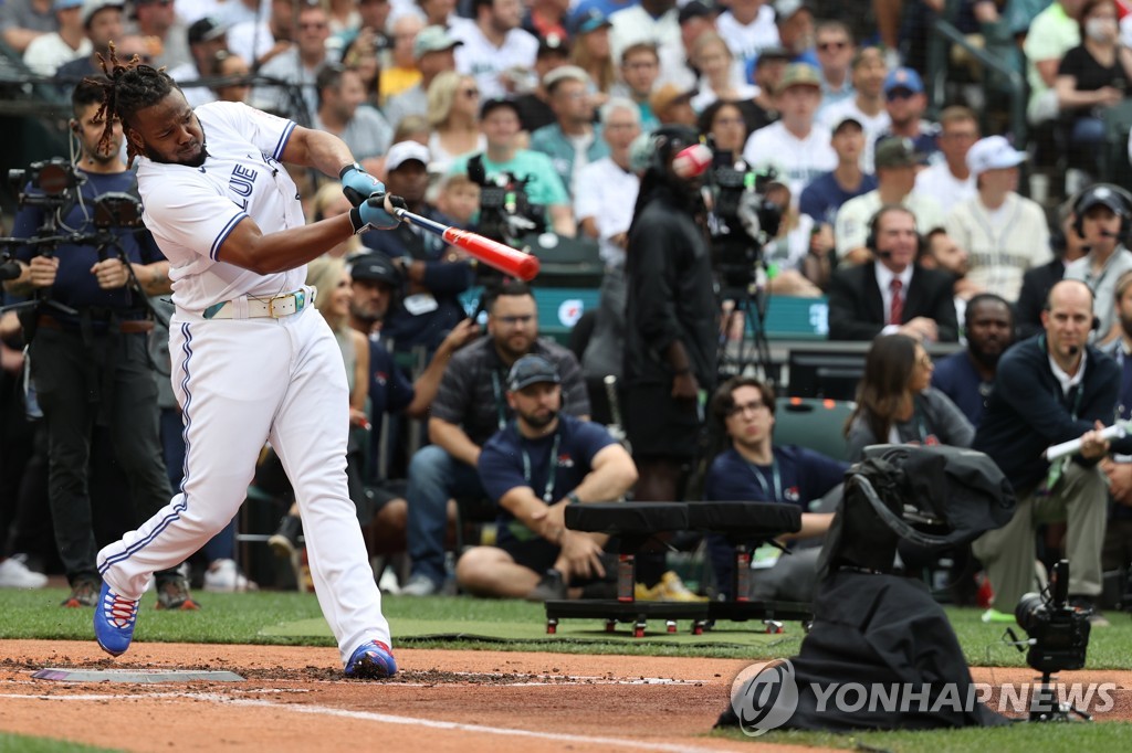 (서울=연합뉴스) 장현구 기자 = '괴수의 아들' 블라디미르 게레로 주니어(토론토 블루제이스)가 미국프로야구 메이저리그(MLB) 올스타전 홈런더비 최초로 아버지에 이어 부자(父子) 홈런왕 등극이라는 진기록을 세웠다.