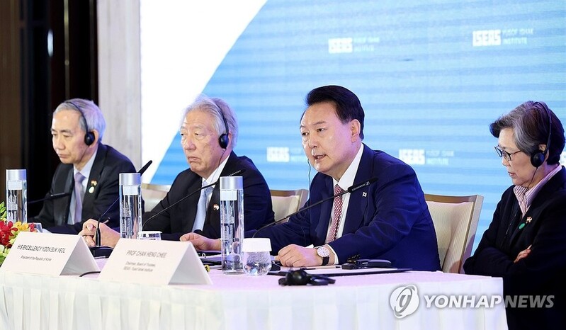 Yoon introduced his vision for unification with North Korea based on liberal democracy during a special lecture in Singapore to drum up international support for his so-called Unification Doctrine, first unveiled in August.