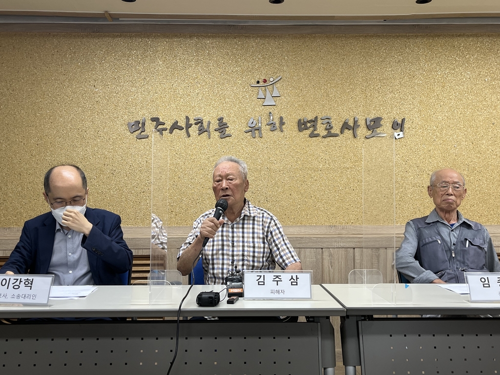김주삼(85) 씨는 10일 서울 서초구 민주사회를 위한 변호사모임 대회의실에서 열린 기자회견에서 남한에 강제로 끌려오면서 북한에 두고 온 가족들을 생각하면 잠이 오지 않는다고 했다.