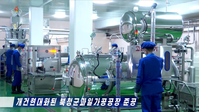 This photo captured from North Korea's Korean Central Television on Nov. 26, 2025, shows a renovated fruit processing factory in Bukcheong, South Hamkyong Province.