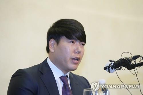 | ▲  In this file photo from June 23, 2020, former major league player Kang Jung-ho speaks at a press conference at a Seoul hotel, as he apologizes for his past drunk driving cases in a bid to return to the Korea Baseball Organization. (Yonhap) |