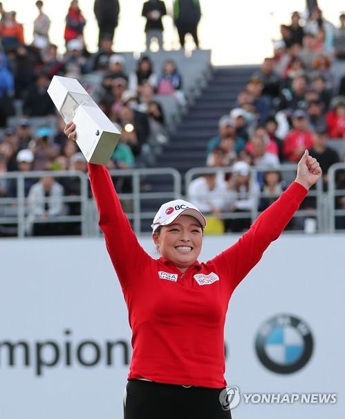 | ▲ 2019년 BMW 레이디스 챔피언십 우승자 장하나. [연합뉴스 자료 사진] |