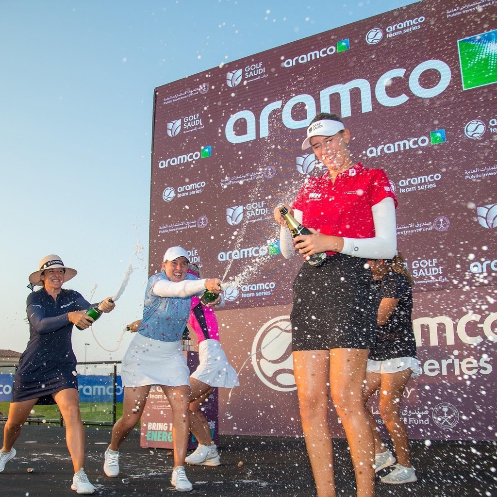 | ▲ LET 아람코 시리즈 대회 우승자를 축하하는 모습. [LET 소셜 미디어 사진. 재판매 및 DB 금지] |
