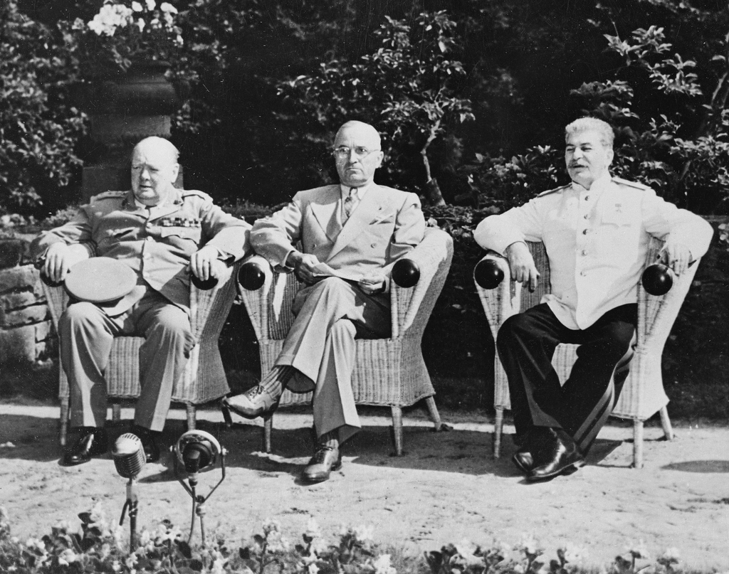 | ▲ 영국-미국-소련 정상 포츠담 회담(1945년 7월 26일) 왼쪽부터 윈스턴 처칠, 해리 트루먼, 이오시프 스탈린 [교도=연합뉴스 자료사진] |