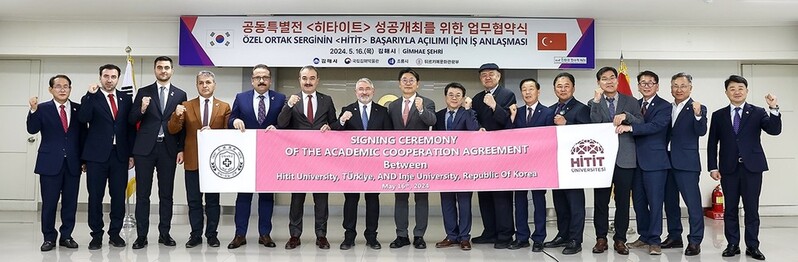 (김해=연합뉴스) 최병길 기자 = 인제대학교와 튀르키예 히타이트대학교가 16일 경남 김해시청 소회의실에서 글로벌 교육역량 강화를 위한 업무협약을 했다.