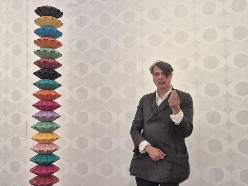 | ▲ (서울=연합뉴스) 황희경 기자 = 독일 작가 그레고어 힐데브란트가 13일 자신의 개인전이 열리고 있는 서울 강남구 청담동 페로탕 갤러리에서 작품을 설명하고 있다. 2024.5.16. zitrone@yna.co.kr |