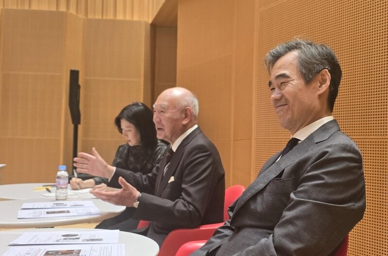 | ▲ 14일 기자간담회에서 공연 취지를 설명하는 츠요시 츠츠미 대표와 양성원 교수 (서울=연합뉴스) 츠요시 츠츠미 일본 산토리홀 대표와 양성원 연세대 음대 교수가 14일 서울 롯데콘서트홀에서 열린 '야노스 슈타커 탄생 100주년 기념 첼로 페스티벌' 사전 기자간담회에서 취재진의 질문의 답변하고 있다. 2024.05.14 hyun@yna.co.kr |