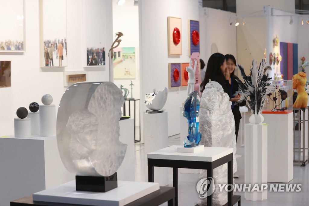 | ▲ 한자리에 모인 조형 작품들 2023년 5월 25일 서울 강남구 코엑스에서 열린 조형아트서울에서 관람객들이 작품을 살펴보고 있다[연합뉴스 자료사진] |