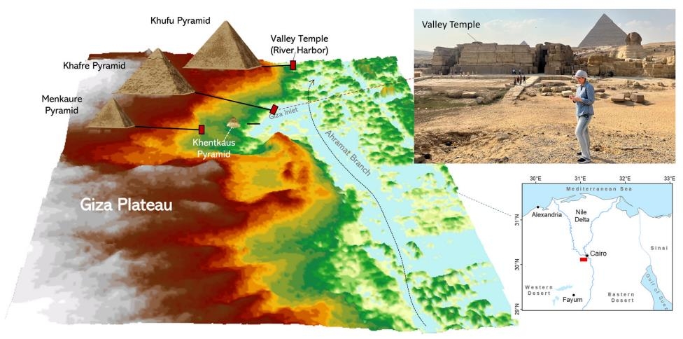 | ▲ 이집트 기자 피라미드 단지와 아흐라마트 지류 복원도 [Eman Ghoneim et al. 제공. 재판매 및 DB 금지] |