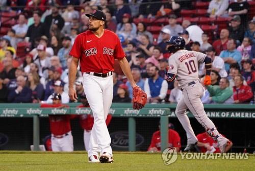 | ▲ 구리엘에게 5번째 홈런을 맞은 보스턴 선발 이발디 [USA투데이스포츠=연합뉴스] |