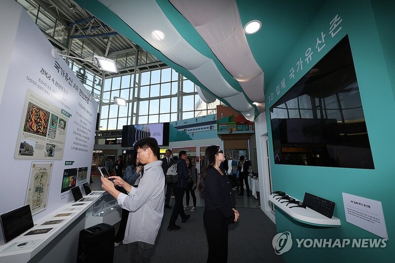 국가유산 체계 전환을 알리기 위해 이달 19일까지 운영하는 홍보관에서는 한국을 대표하는 명소인 경복궁, 국보 경주 첨성대 등을 가상현실(VR)·증강현실(AR) 등을 활용한 체험을 즐길 수 있다. 2024.5.10 hwayoung7@yna.co.kr |