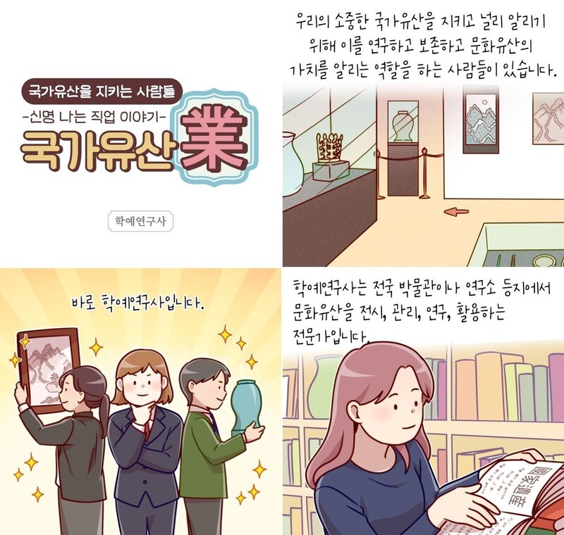 | ▲ 국가유산 관련 직업을 소개하는 웹툰 국가유산 체제를 쉽게 홍보하기 위해 웹툰을 활용한 정보를 전달하는 만화. '국가유산사랑' 소식지 5월호에 실린 것.[문화재청 제공. 재판매 및 DB 금지] |