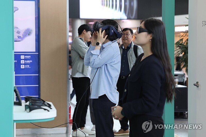| ▲ VR·AR로 알아보는 국가유산 체계 전환 (서울=연합뉴스) 임화영 기자 = 10일 서울역 공항철도역 입구에 마련된 국가유산 디지털 홍보관을 찾은 시민들이 체험을 즐기고 있다. 국가유산 체계 전환을 알리기 위해 이달 19일까지 운영하는 홍보관에서는 한국을 대표하는 명소인 경복궁, 국보 경주 첨성대 등을 가상현실(VR)·증강현실(AR) 등을 활용한 체험을 즐길 수 있다. 2024.5.10 hwayoung7@yna.co.kr |