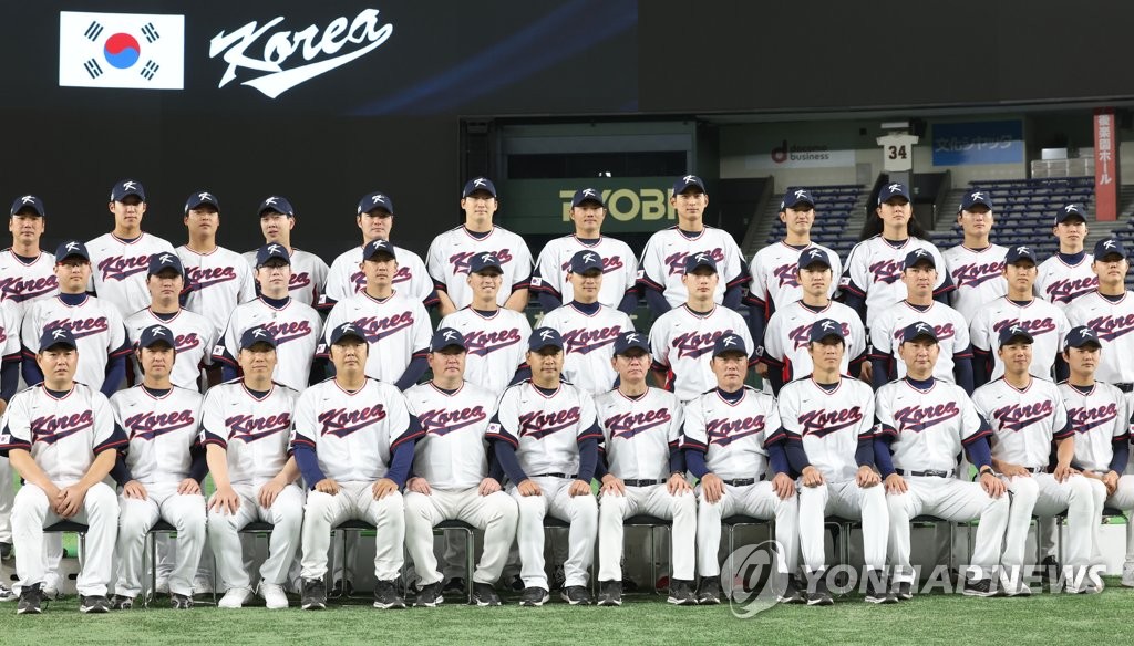 | ▲ WBC 대표팀 도쿄 입성 (도쿄=연합뉴스) 신준희 기자 = 2023 WBC 대회가 열리는 일본 도쿄돔에서 8일 한국 대표팀 이강철 감독과 선수들이 단체 사진 촬영을 하고 있다. 대표팀은 이곳에서 오는 9일 호주와 1라운드 첫 경기를 치른다. 2023.3.8 hama@yna.co.kr |
