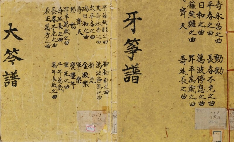 | ▲ '이왕직 아악부 정간보' 대금보(왼쪽)와 아쟁보 [문화재청 제공. 재판매 및 DB 금지] |