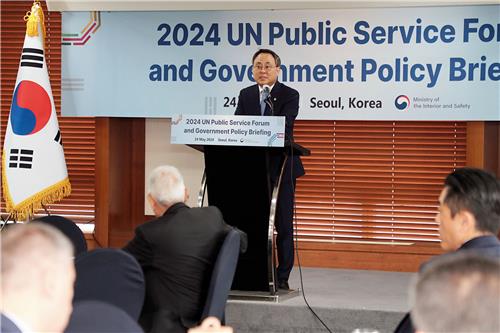 SEOUL, May 24 (Yonhap) -- South Korea will host the annual U.N. Public Service Forum next month to discuss ways to enhance capabilities in the public sector through digital transformation and artificial intelligence in the face of global challenges, the interior ministry said Friday.