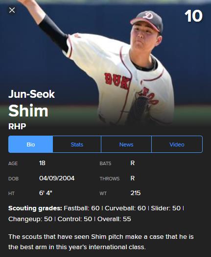 심준석, MLB닷컴 선정 국제 유망주 10위…"박찬호의 어린 시절"