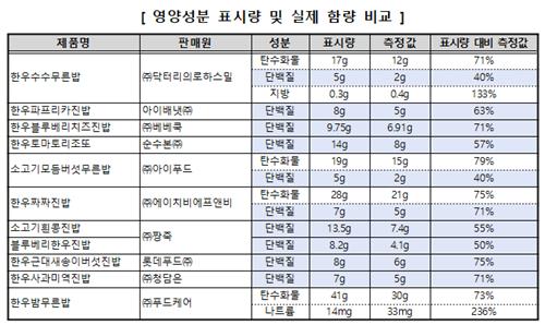 | ▲ 영양성분 표시량 및 실제 함량 비교 [한국소비자원 제공. 재판매 및 DB 금지] |