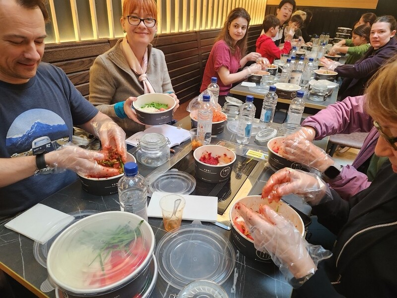 (옥스퍼드=연합뉴스) 김지연 특파원 = 다양한 연령대의 영국인 20여 명이 진지한 얼굴로 토마토와 부추, 양파가 담긴 그릇에 빨간 김치 양념을 버무리고 보관용기에 옮겨 담으며 뿌듯한 표정을 짓는다.