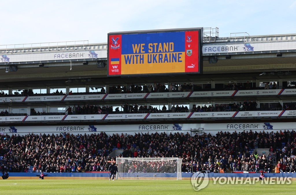 리즈 유나이티드-토트넘 홋스퍼가 맞붙은 리즈의 엘런드 로드, 크리스털 팰리스-번리가 만난 런던의 셀허스트 파크에서도 우크라이나를 향한 응원을 볼 수 있었다.