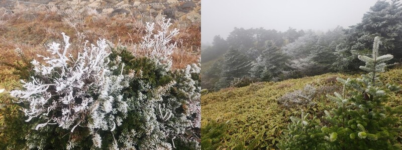 제주지방기상청에 따르면 이날 아침 해발 1천700m 한라산 윗세오름의 최저기온이 영하 1도까지 떨어졌다.