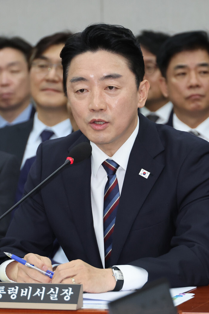 Presidential chief of staff Kang Hoon-sik speaks during a parliamentary audit of his office by the parliamentary steering committee at the National Assembly in Seoul on Nov. 6, 2025. (Yonhap)