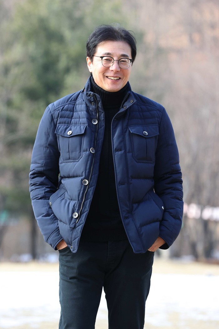 Hwang Sun-hong, head coach of the South Korean men's football team bidding for qualification for the 2024 Paris Olympics, poses for a photo prior to an interview in Seongnam, south of Seoul, on Dec. 26, 2023. (Yonhap)on Dec. 26, 2023. (Yonhap)