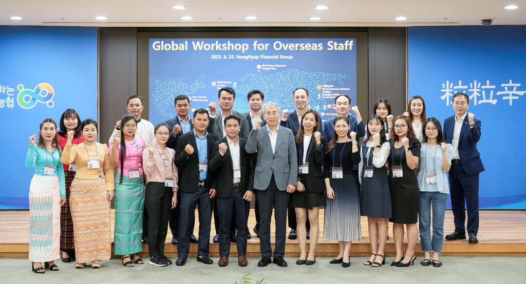 ▲ NH농협금융은 지난 23일 계열사 아시아 지역 해외점포에서 현지채용한 우수 직원들을 대상으로 워크숍을 개최했다고 25일 밝혔다. 그룹 핵심가치 및 글로벌전략 이해 증진, 자긍심 고취를 목적으로 마련된 이번 워크숍은 금융지주 및 계열사별 간담회, 본사 등 농협사업장 견학, 경복궁 등 한국 문화 체험 프로그램 등으로 진행됐다. 지난 2일에는 이석준 농협금융 회장이 현지 직원들과 만나 소통하는 시간을 가졌다. (서울=연합뉴스)