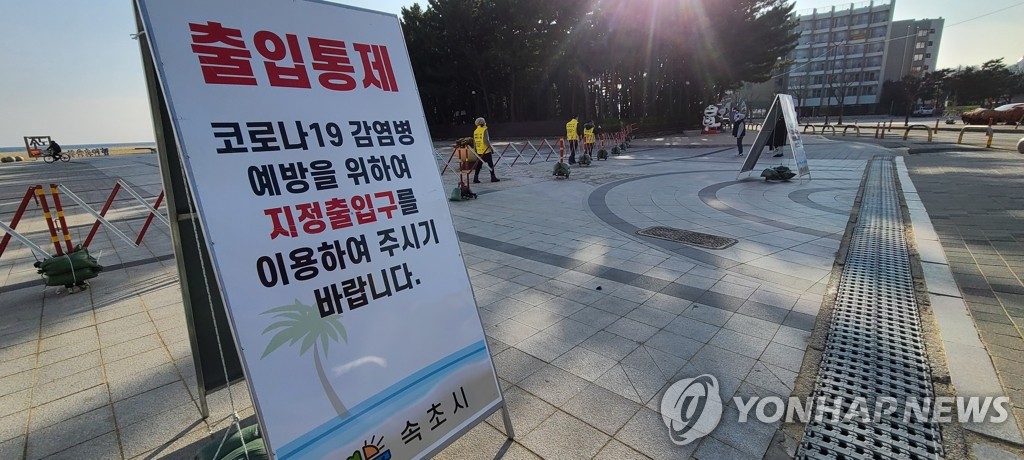 속초시는 속초해변과 외옹치 바다향기로를 폐쇄하고, 주변 지역에 출입 통제용 울타리를 설치했다.