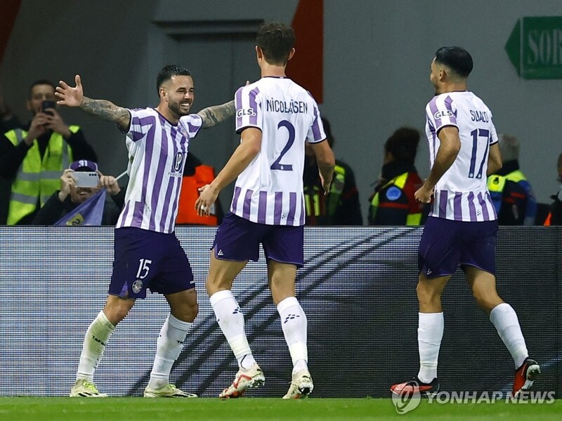| ▲ 선제골 넣고 기뻐하는 툴루즈의 아론 된눔(왼쪽) [로이터=연합뉴스] |