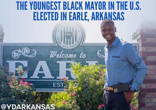 (서울=연합뉴스) 임미나 기자 = 미국에서 선출된 역대 최연소 흑인 시장으로 관심을 끈 아칸소주 소도시 얼(Earle) 시(市)의 제일렌 스미스(민주당) 당선자가 새해 첫날 시장으로 공식 취임했다.