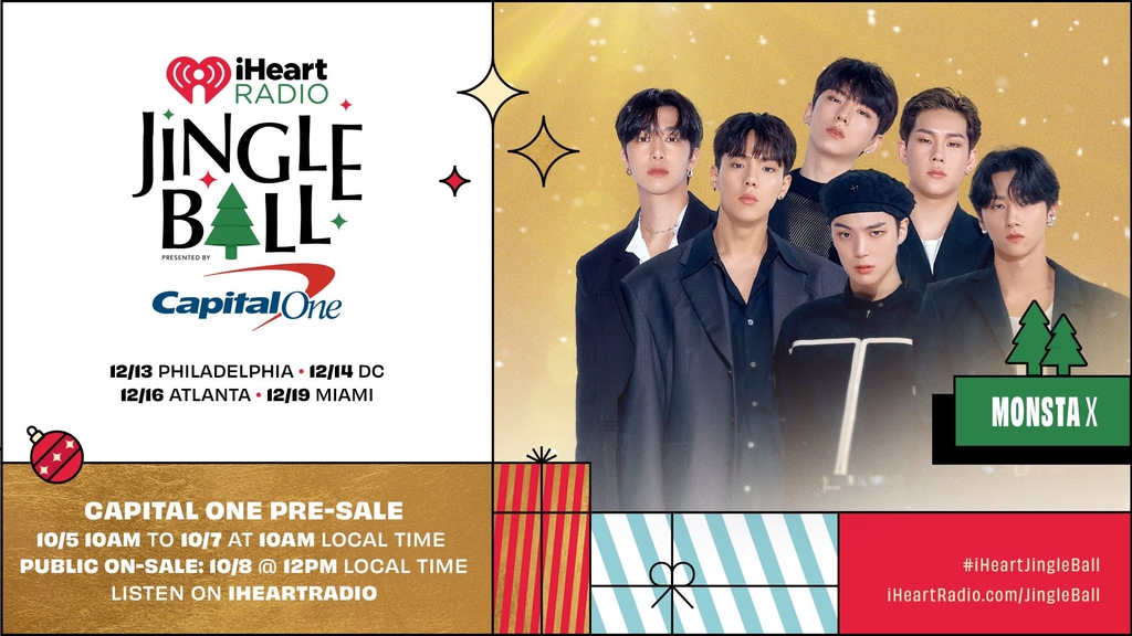 2일 소속사 스타쉽엔터테인먼트에 따르면 보이그룹 몬스타엑스는 오는 12월 미국 유명 라디오 방송국 아이하트라디오가 주최하는 연말 콘서트 '2021 징글볼' 투어에 참여한다.