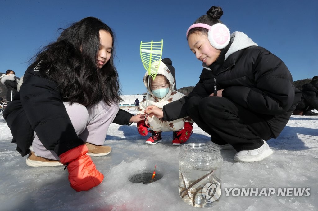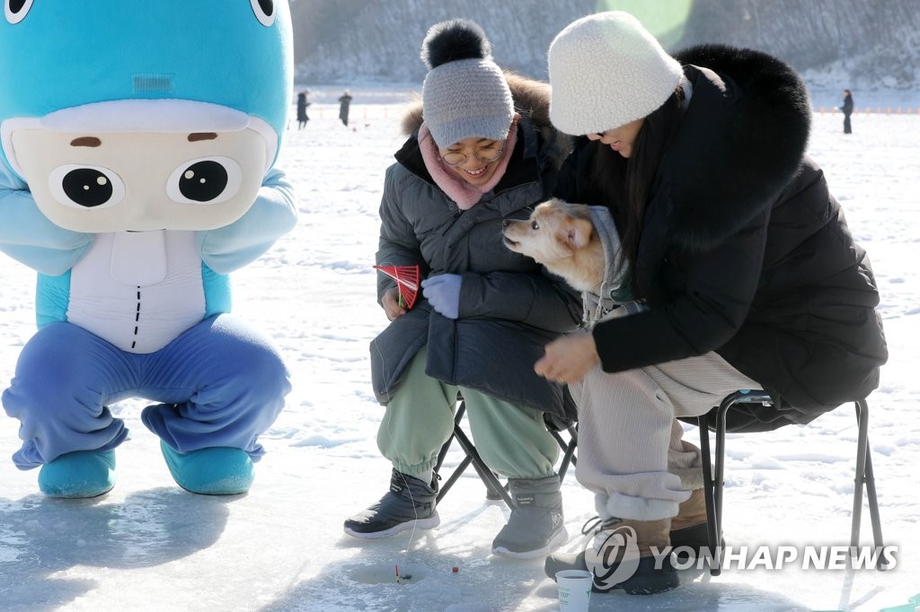 관광객들은 두 볼과 코끝이 빨개지는 영하 5도 안팎의 추위도 잊은 채 얼음낚시의 매력에 푹 빠졌다.