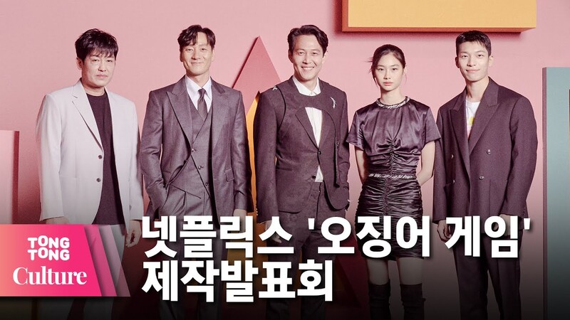 9월 15일 넷플릭스 드라마 '오징어 게임'의 제작발표회가 열렸다. 이날 행사에는 배우 이정재, 박해수, 위하준, 정호연, 허성태, 황동혁 감독 등이 참석했다.