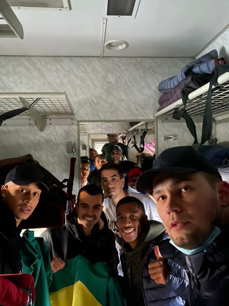 | ▲ 어렵게 구한 버스로 이동, 루마니아로 향하는 기차에 탑승한 선수들. [마르코스 모타 소셜 미디어 사진. 재판매 및 DB 금지] |