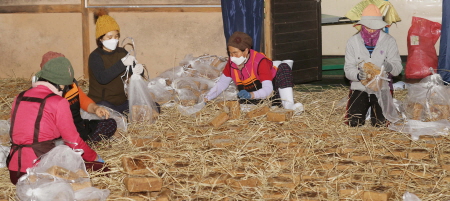 스물한 번째 절기 대설(大雪)인 지난 7일 전통된장마을인 전남 강진군 군동면 신기마을 주민들이 발효실에서 발효를 마친 메주를 손질해 겨우내 지낼 자리로 옮기고 있다.
