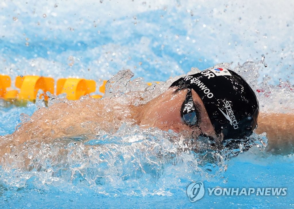 | ▲ Hwang Sun-woo of South Korea races in the men's 100m freestyle semifinals at the Tokyo Olympics at Tokyo Aquatics Centre in Tokyo on July 28, 2021. (Yonhap) |