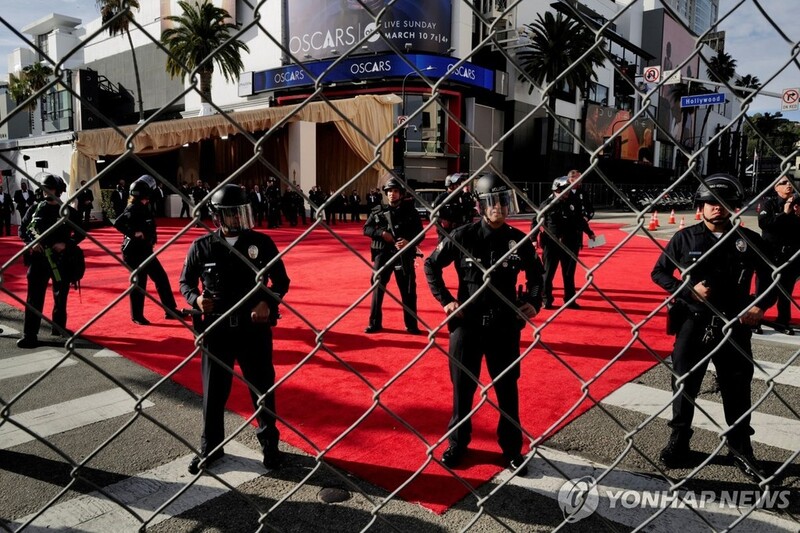 | ▲ 오스카 시상식장 밖에서 시위대 경계하는 경찰들 [로이터=연합뉴스. 재판매 및 DB 금지] |
