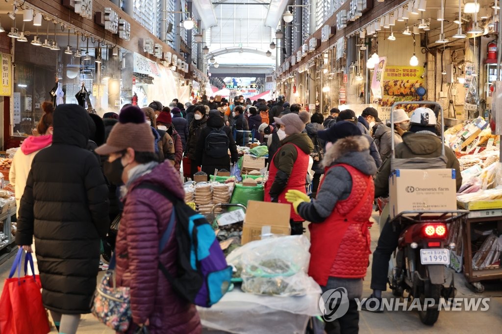 | ▲ 16대 성수품 작년보다 일주일 먼저 공급...최대 규모 (서울=연합뉴스) 김주성 기자 = 11일 서울 동대문구 청량리농수산물시장이 설을 앞두고 조금씩 활기를 찾아가는 모습이다. 정부는 서민 생활물가 안정을 위해 사과, 배 등 16대 성수품을 작년 설보다 일주일 빠른 3주 전부터 역대 최대 수준인 20만4천t 공급하고 할당관세 적용 등 가격 급등 원재료 대상 세제·금융 지원도 확대한다. 2022.1.11 utzza@yna.co.kr |