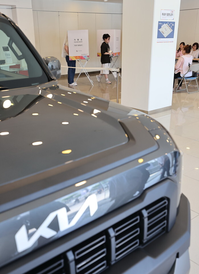 Voting in S. Korea to pick new president People vote at a polling station in an imported car outlet in Seoul's Gwangjin Ward on June 3, 2025, in the South Korean presidential election. (Yonhap)(END)