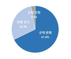 응답자들의 67.8%는 대형마트 영업규제에 대해 '규제 완화'가 필요하다고 답했고 '현행 유지'와 '규제 강화' 응답은 각각 29.3%와 2.9%였다.