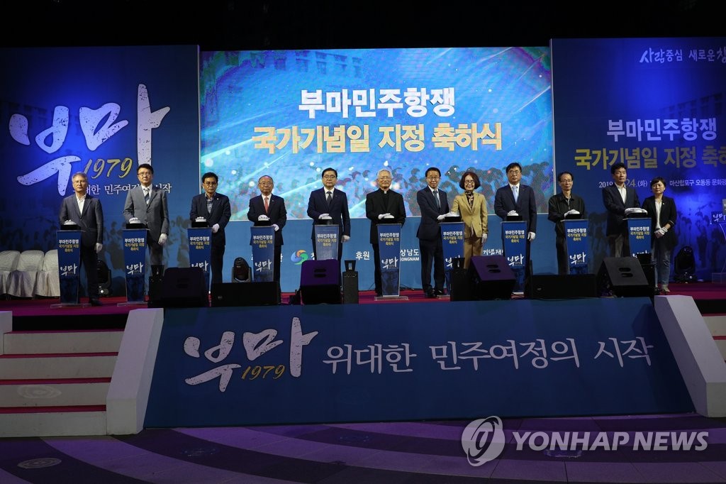 | ▲ 부마민주항쟁 국가기념일 지정 축하 2019년 9월 24일 경남 창원시 마산합포구 오동동 문화광장에서 부마민주항쟁 국가기념일 지정 축하식이 열리고 있다. [창원시 제공. 재판매 및 DB금지] |
