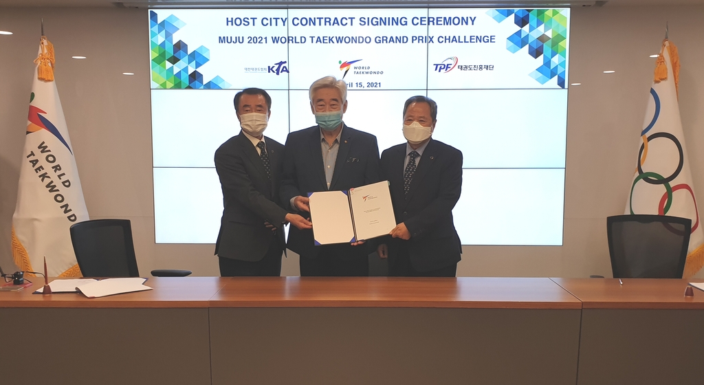 WT, 태권도진흥재단, 대한민국태권도협회는 15일 WT 서울 본부에서 '무주 2021 월드태권도그랑프리챌린지' 대회 개최를 위한 세부 내용을 담은 계약을 맺었다.