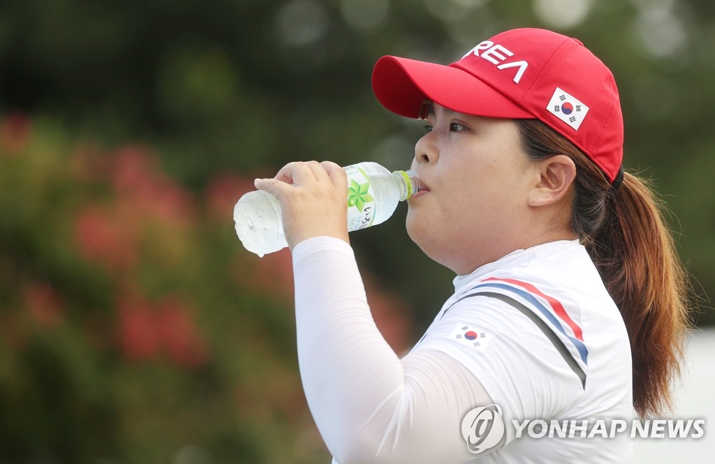 | ▲ Park In-bee of South Korea drinks water during the final round of the Tokyo Olympic women's golf tournament at Kasumigaseki Country Club in Saitama, Japan, on Aug. 7, 2021. (Yonhap) |