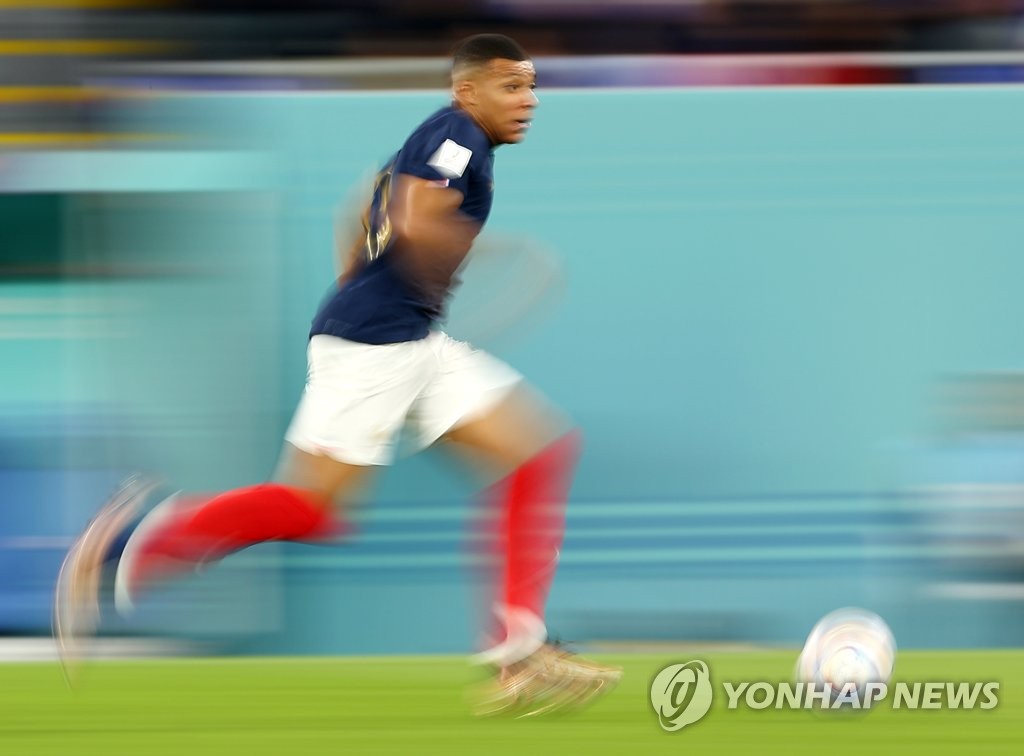 | ▲ 음바페 고속질주 (도하=연합뉴스) 김도훈 기자 = 26일(현지시간) 카타르 도하 스타디움 974에서 열린 2022 카타르 월드컵 조별리그 D조 프랑스와 덴마크 경기. 프랑스 킬리안 음바페가 질주하고 있다. 2022.11.27 superdoo82@yna.co.kr |