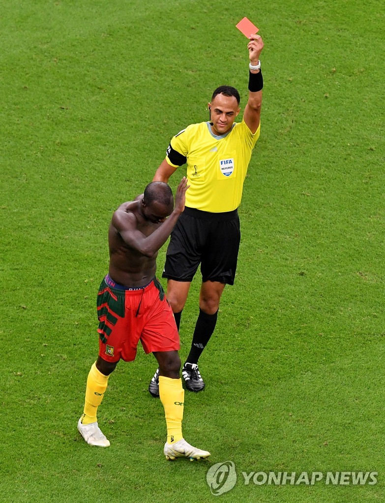 | ▲ 득점 후 상의 탈의 세리머니를 하다 퇴장당한 카메룬 뱅상 아부바카르 [로이터=연합뉴스] |
